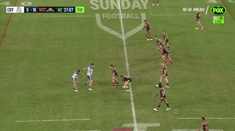 He then fires a peach of a pass - across three Bulldogs defenders - to the chest of Brooks, who gets outside Cogger’s shoulder to drop Sam McIntyre into a hole, dragging the ‘Dogs defence in field: