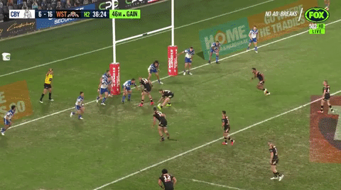 Off the back of Newcastle’s only forced drop out of the game, Daniel Saifiti drops the ball on the first tackle.